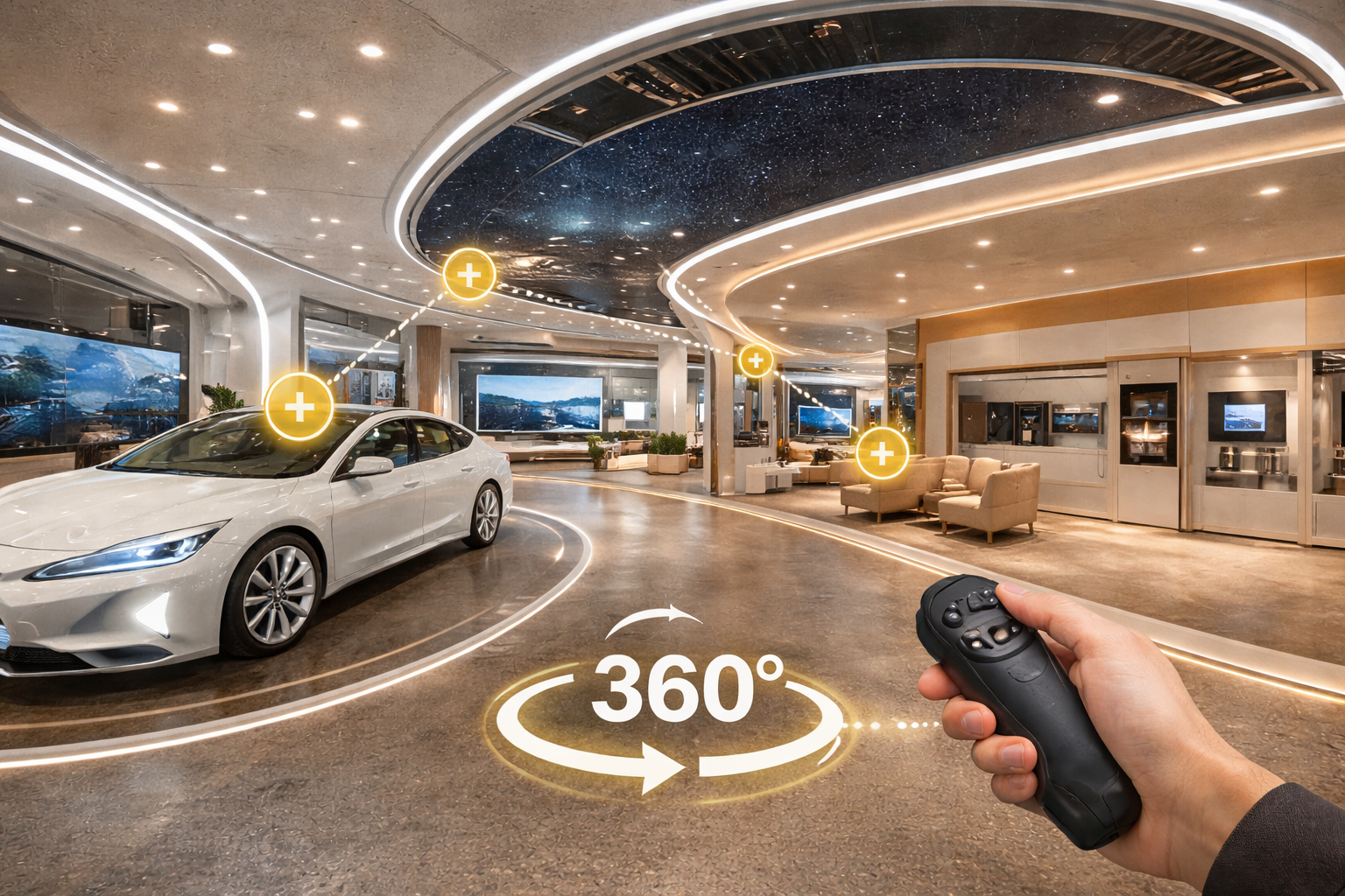 VR360 cho showroom là công nghệ xây dựng không gian trưng bày ảo 360°, cho phép khách hàng: