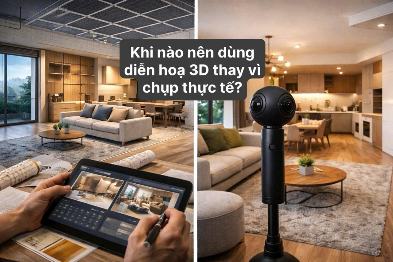 Khi quảng bá dự án BĐS, khách sạn, nhà xưởng hay showroom… hai định dạng được dùng nhiều nhất chính là Virtual Tour 360° và Video truyền thống.Vậy khác nhau ở đâu? Hiệu quả ra sao? Và khi nào nên dùng cái nào để không tốn kém mà vẫn...